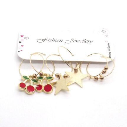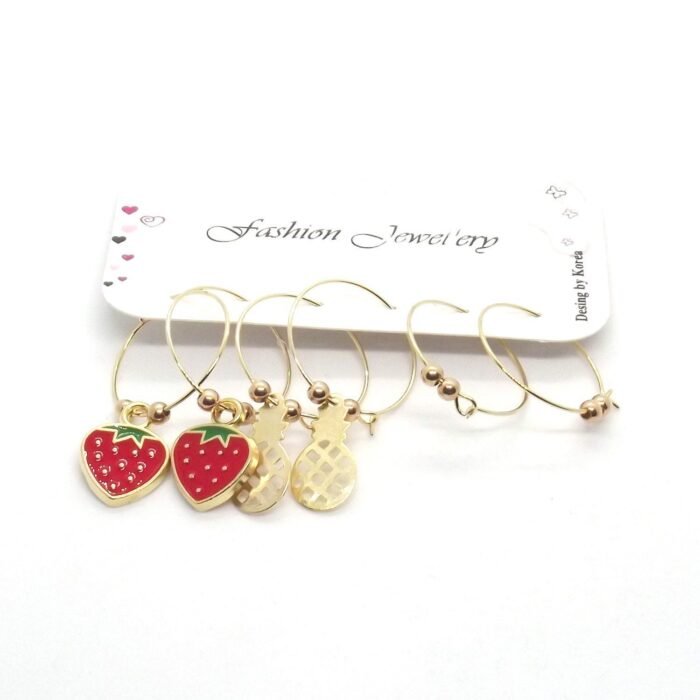 Altın Renk Mineli Çilek Figurlu Kombin Küpe 656