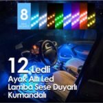 ARAÇ İÇİ MÜZİĞE VE SESE DUYARLI RGB LEDÜrün ÖzellikleriAraç içi müziğe ve sese duyarlı RGB LED aydınlatma sistemi, çakmaklık girişli kolay kurulumuyla aracınıza estetik ve eğlenceli bir atmosfer katar. Müzik kontrollü özellikleri sayesinde, araç içindeki müzik ve seslere duyarlı olarak renk değiştirme modu sunar. Uzaktan kumanda ile açma-kapama, parlaklık ayarı, renk değiştirme ve müzik modlarını kolayca kontrol edebilirsiniz.4 adet silikon esnek LED lambadan oluşan bu set, her lambada 12 adet 5050 SMD LED içerir. Çift taraflı bant ile kolayca monte edilebilir ve 12 volt tüm araçlarda kullanılabilir. IP5 su geçirmezlik özelliği sayesinde dayanıklıdır.LED lambalar, arkasındaki çift taraflı bant ile araç içi istenilen yere kolayca yapıştırılır. Güç bağlantısı için çakmaklık soketi kullanılır.Paket İçeriği4 adet LED lamba1 adet uzaktan kumanda (pili dahil)1 adet çakmaklık soketi