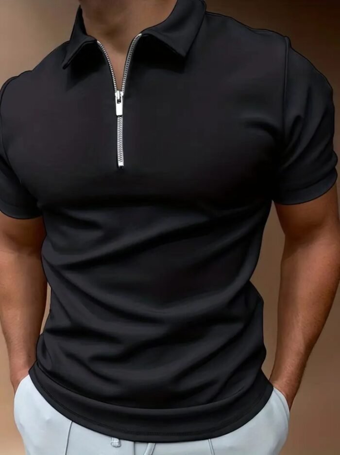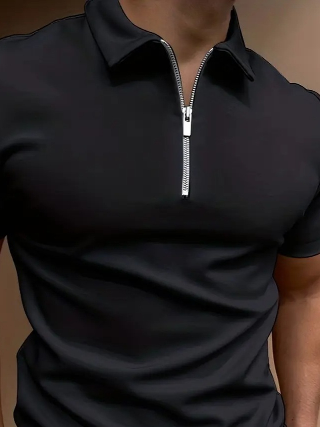 Erkek Kısa Kollu Yakalı önden Fermuarlı Viskon Iki Iplik Bluz