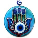 Füzyon Cam Fatma Ana Bereket Eli Desenli Nazar Boncuklu Duvar Süsü El Yapımı Dekoratif Nazarlık