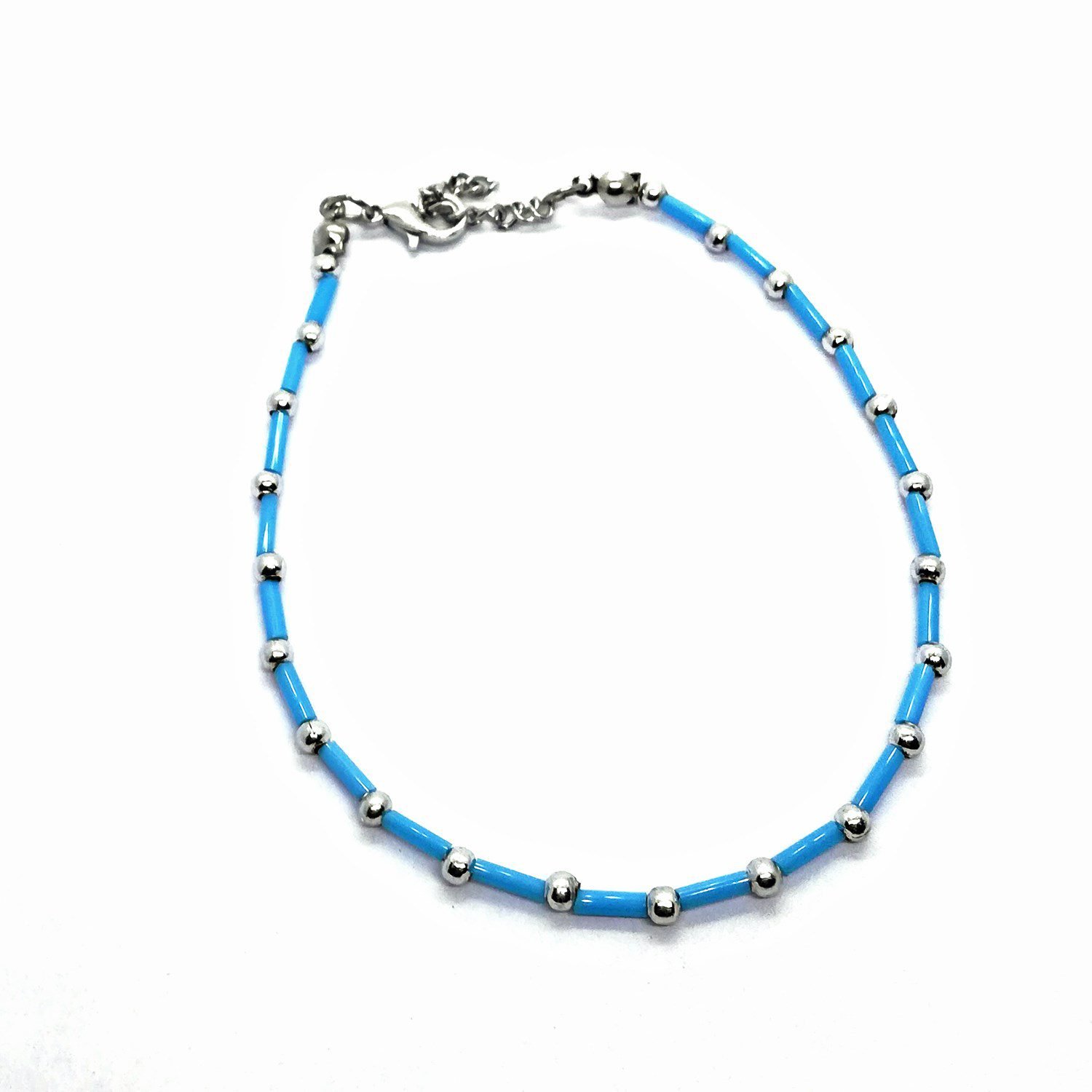 Gümüş Renk Mavi Boru Boncuk Halhal – 1188