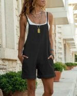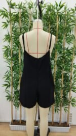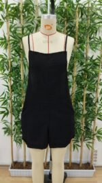 Kadın Ip Askılı Geometrik Yaka Yandan Fermuarlı Kısa Keten Tulum