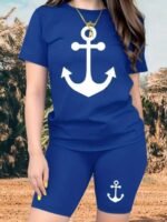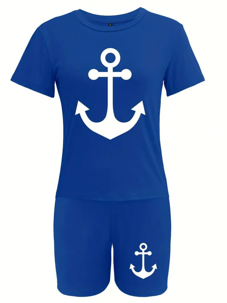 Ana Sayfa Kadın Takım Kadın Kısa Kollu çapa Baskılı Viskon Ikili Takım, 16285