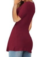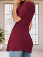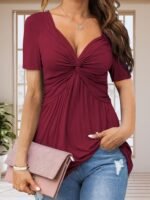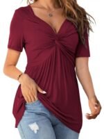 Kadın Kısa Kollu önü Düğüm Detay Viskon Bluz