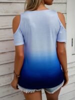 Kadın Kısa Kollu V Yakalı Iki Omuzu Açık Baskılı Süprem Bluz