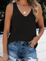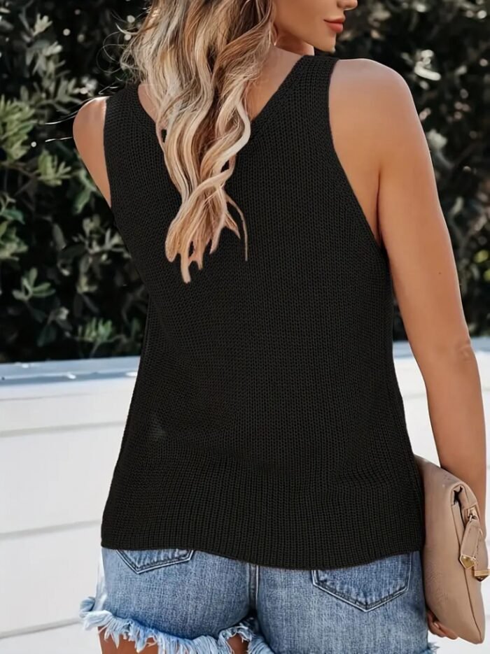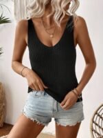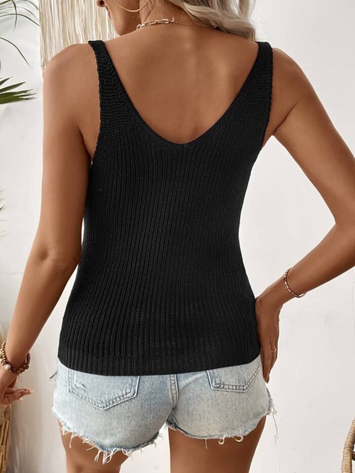 Kadın Kolsuz V Yaka Kalın Askılı Triko Bluz