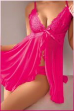 Ürün : Kadın Seksi Fuşya Tül Gecelik ve Külot Takım