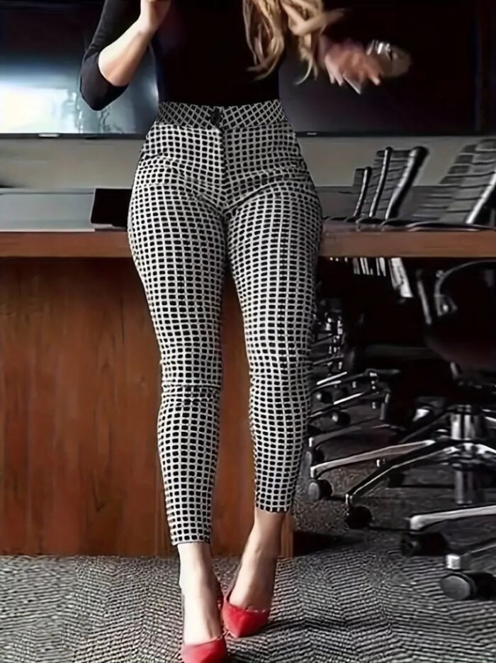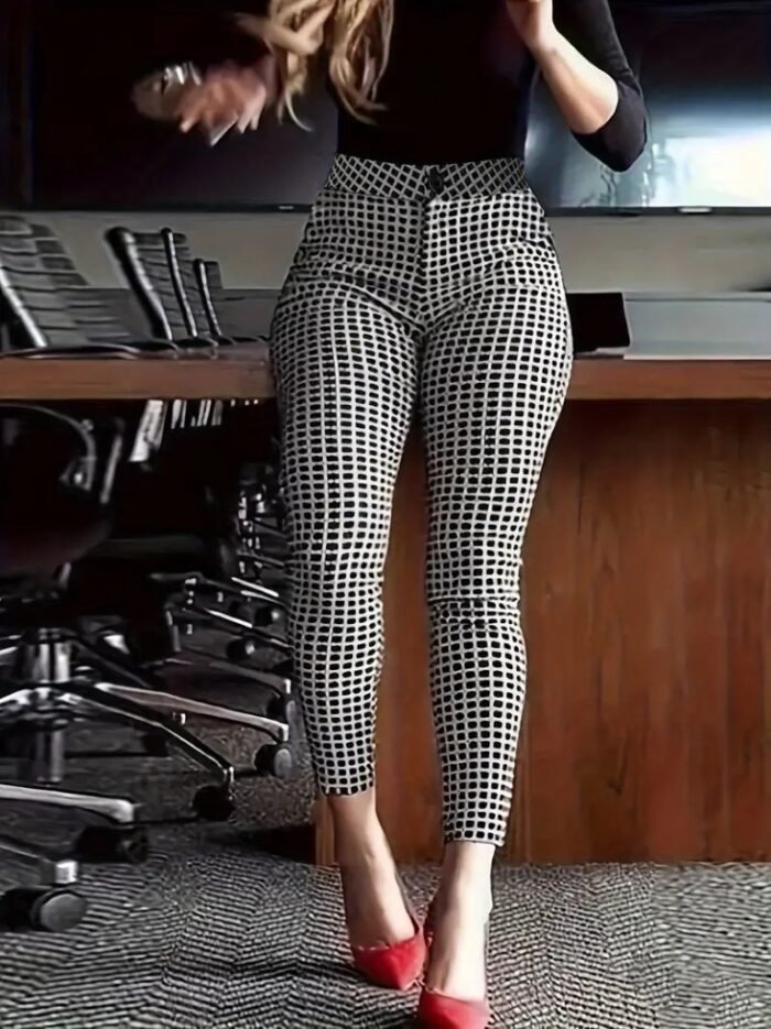 Ana Sayfa Kadın Pantolon Kadın Yüksek Bel Desenli Dalgıç Pantolon , 23677