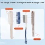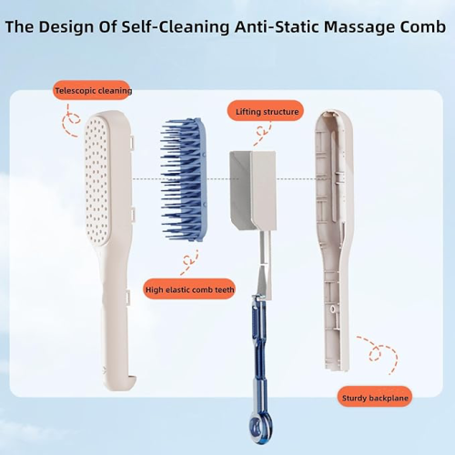 KENDİNİ TEMİZLEYEN SAÇ TARAĞI”Saçınıza Hak Ettiği Bakımı Verin – Her Tarakta Spa Hissi!”Kendi Kendini Temizleyen Anti-statik Masaj Tarağı:- Masaj Özelliği: Bu tarak, kafa derisine masaj yapabilen ve saçı nazikçe tedavi edebilen küçük yuvarlak parçacıklara sahiptir. Bu özellik sayesinde rahatlatıcı bir spa benzeri deneyim sunar.Ergonomik Tasarım:- Kullanım Kolaylığı: Basit ve şık bir görünüme sahip olan tarak, buzlu bir dokuya sahiptir ve ergonomik tutamağı ile rahat ve keyifli bir tarama deneyimi sağlar.Kullanımı Kolay:- Hızlı Temizlik: Geri çekilebilir döner kaldırma mekanizması sayesinde tarak, 1 saniyede saçları temizler. Sadece kolu döndürerek hava yastığının tüm saç ve döküntüleri serbest bırakmasını sağlayabilirsiniz. Bu özellik kepek ve kuru saç derisini tedavi ederek kafa derisi sağlığını ve saç büyümesini destekler.Tüm Saç Tipleri için Uygun:- Çok Yönlülük:Saça nazikçe nüfuz eder, en düğümlü düğümleri kolayca çözer ve tüm saç tiplerine uygundur. Düz saçlar, kıvırcık saçlar, ince saçlar, kalın saçlar, zarar görmüş saçlar, peruk ve uzatılmış saçlar için ideal bir taraktır.Kullanım Alanları- Günlük Kullanım: Her türlü saç tipi ve ihtiyacı için günlük kullanıma uygun.- Saç Bakımı ve Şekillendirme: Hem saç bakımında hem de saç şekillendirmede rahatlıkla kullanılabilir.- Masaj ve Rahatlama:Kafa derisine masaj yaparak rahatlama ve konfor sağlar.Paket İçeriği1 adet kendini temizleyen saç tarağı