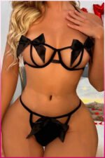 Ürün : Siyah Göğüs Fiyonklu Balenli Sütyen Külot Takım