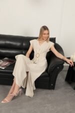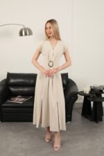 Ana Sayfa Toptan Üst Giyim Toka Detaylı Elbise-Bej