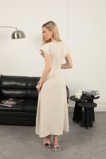 Toka Detaylı Elbise-Bej